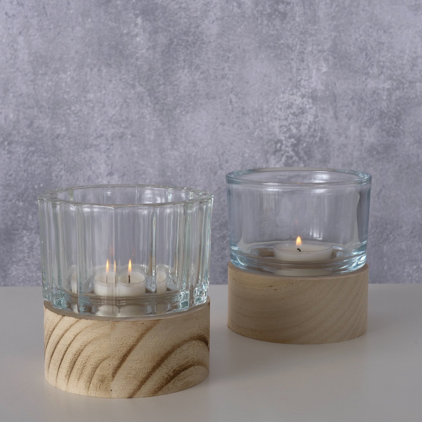Boltze Home Windlicht Riley glas/hout Ø9xh10cm