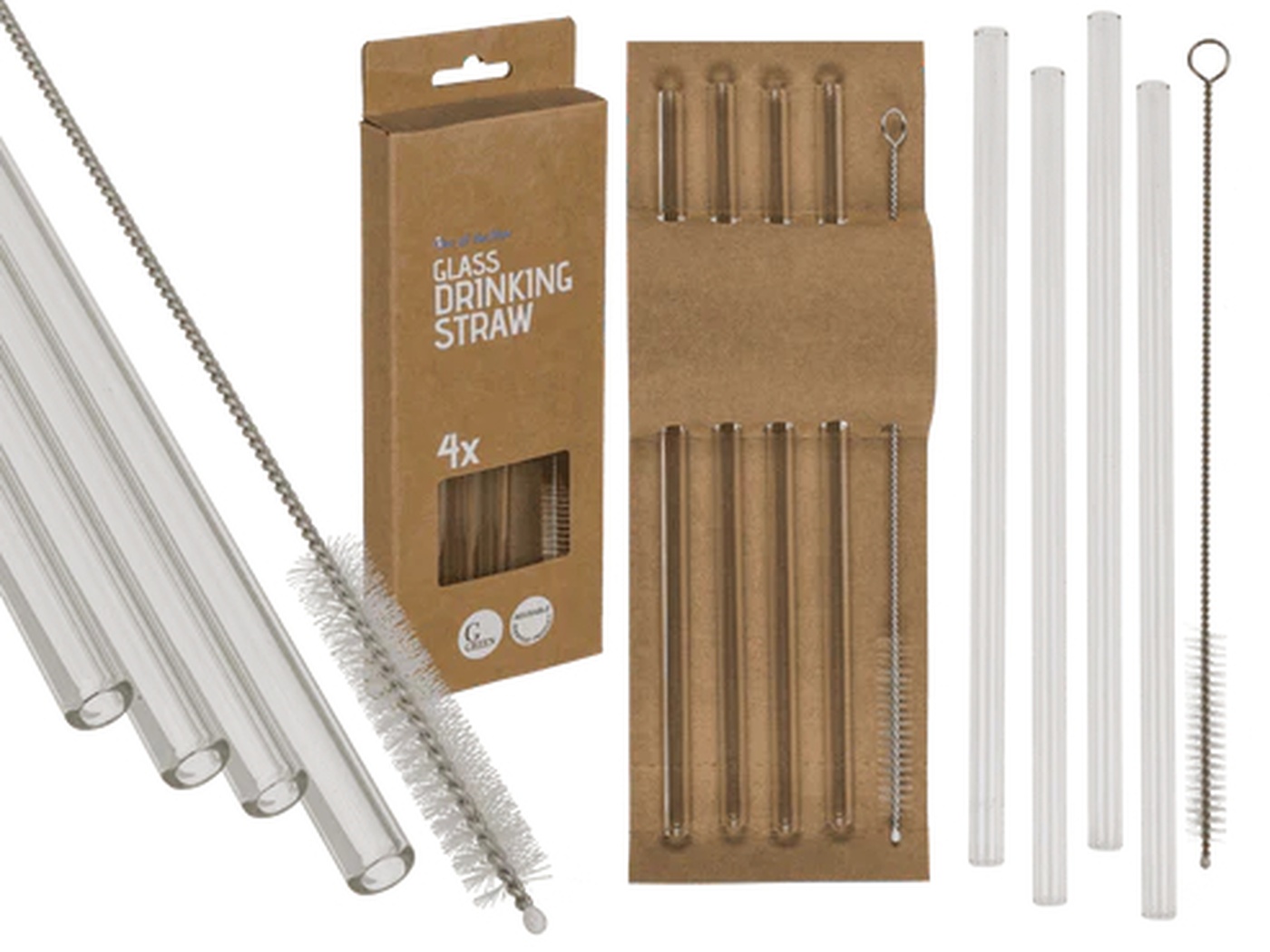 Glazen drinkrietjes 4 stuks met borstelGlazen drinkrietjes 4 stuks met borstel