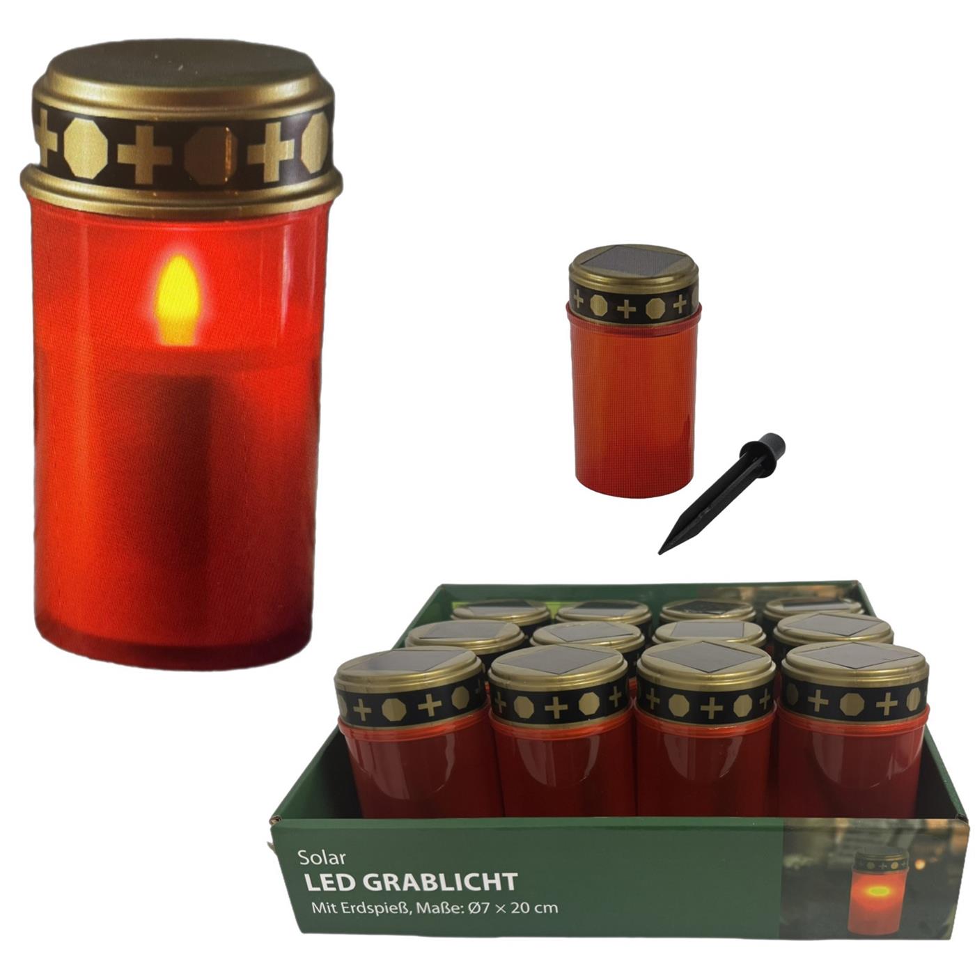 Graflicht LED solar rood Ø7xH20cm met grondsteker