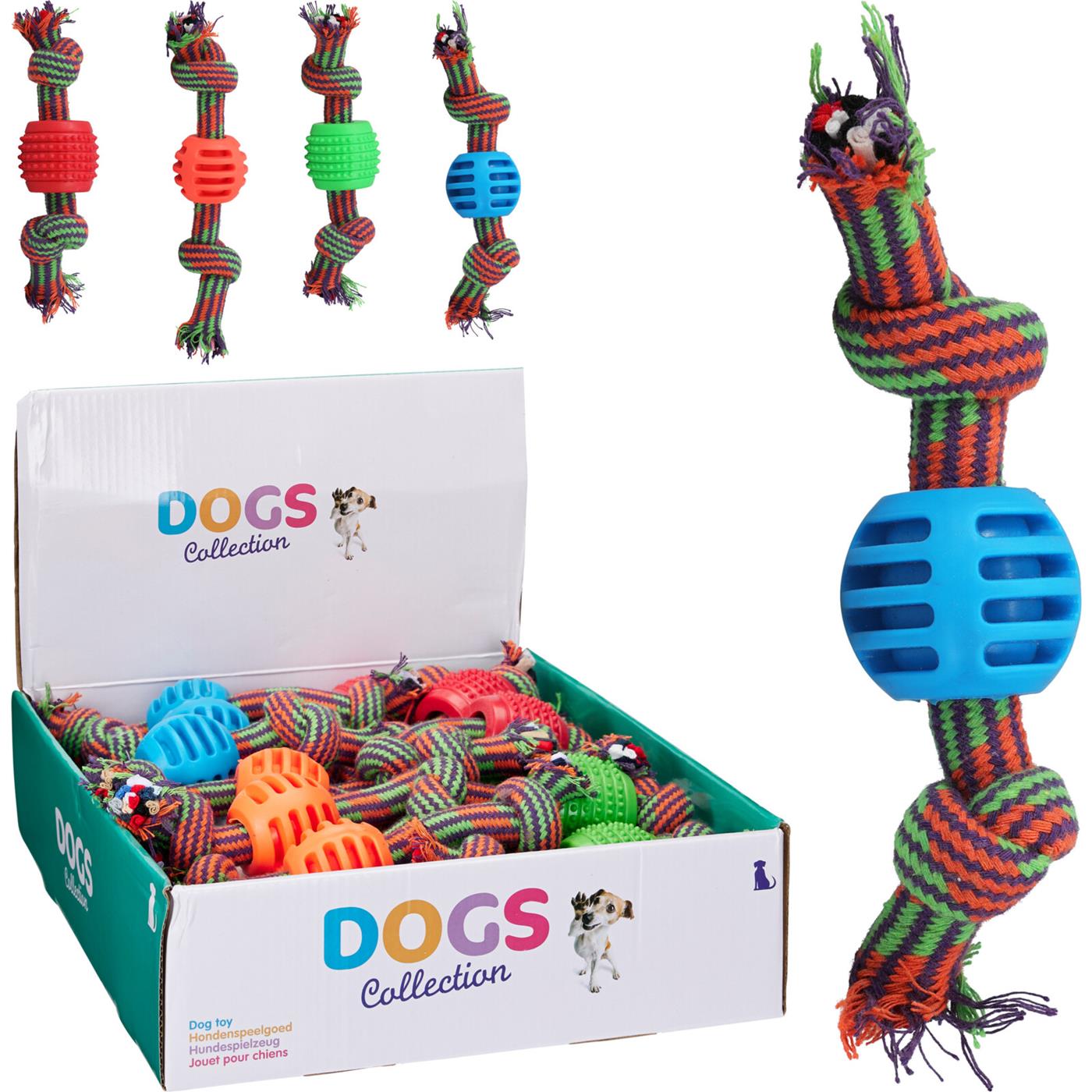 Hondentouw met speelgoed 4ass