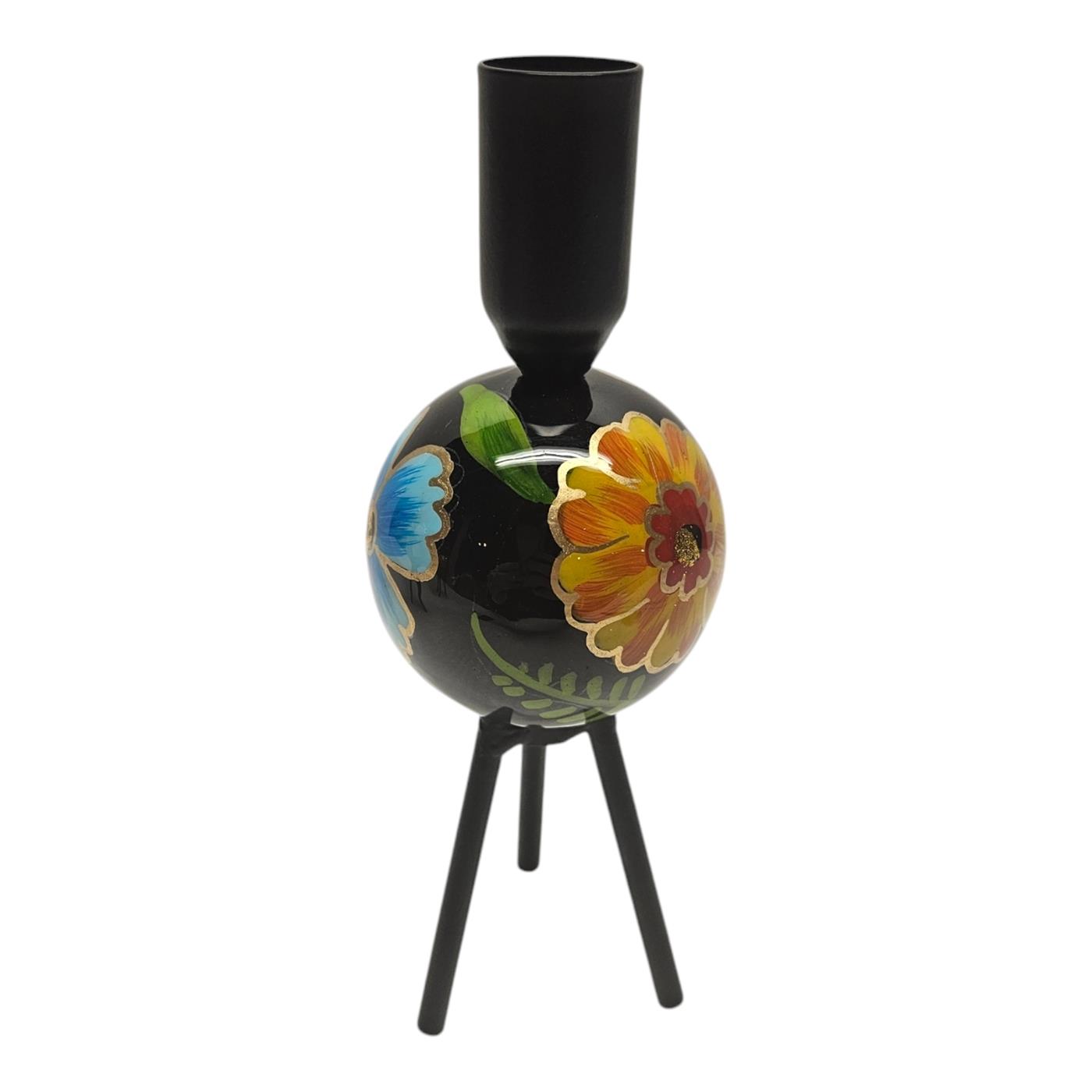 Mansion atmosphere Kandelaar driepoot bloem zwart 6,5x6,5x19cm
