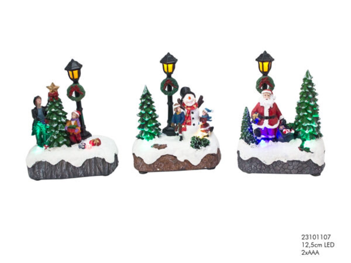 Kerstscene polystone met lantaarn- 12,5x9,5x5,5 cm- LED- (excl.2xAAA batterij)
