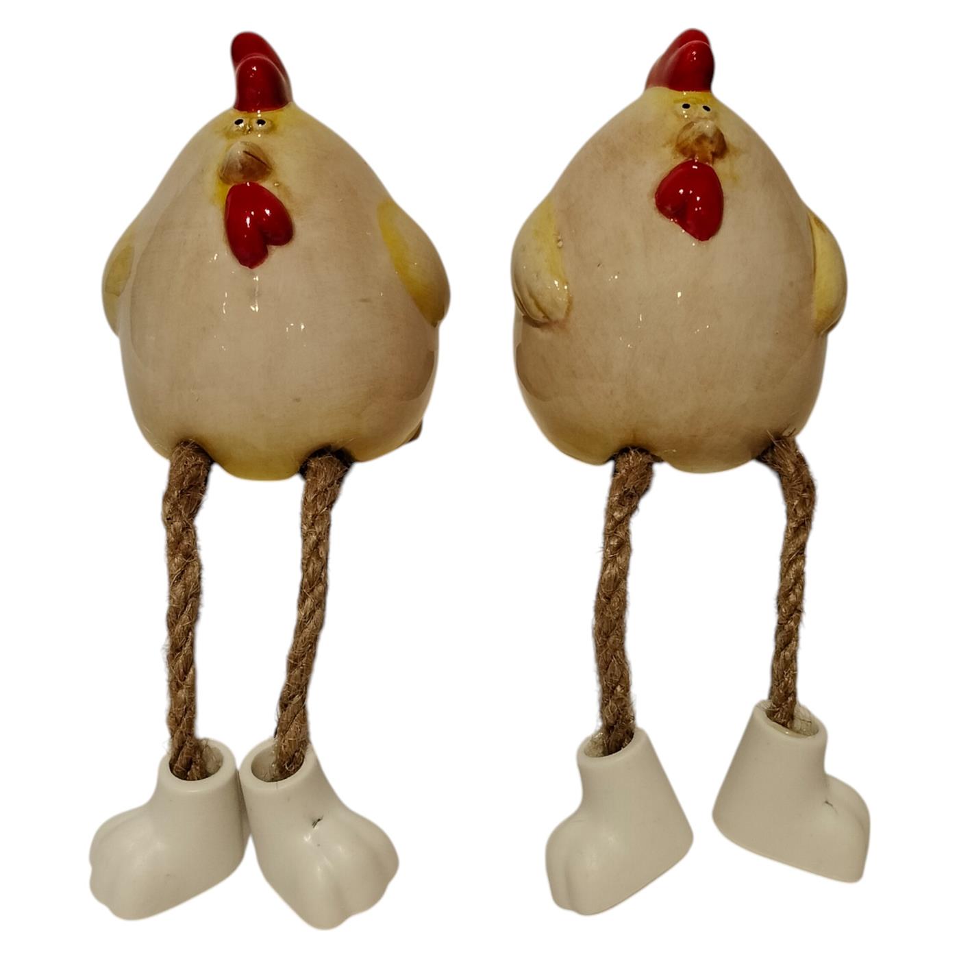 Decoratie kip met bungelbeentjes beige 6,5x7x7,8cm 2 assorti
