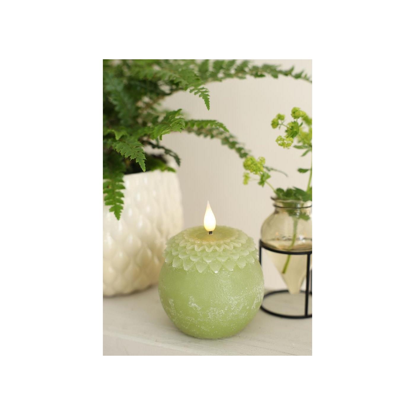 LED Kaars wax bloem parel groen Ø9xH12cm