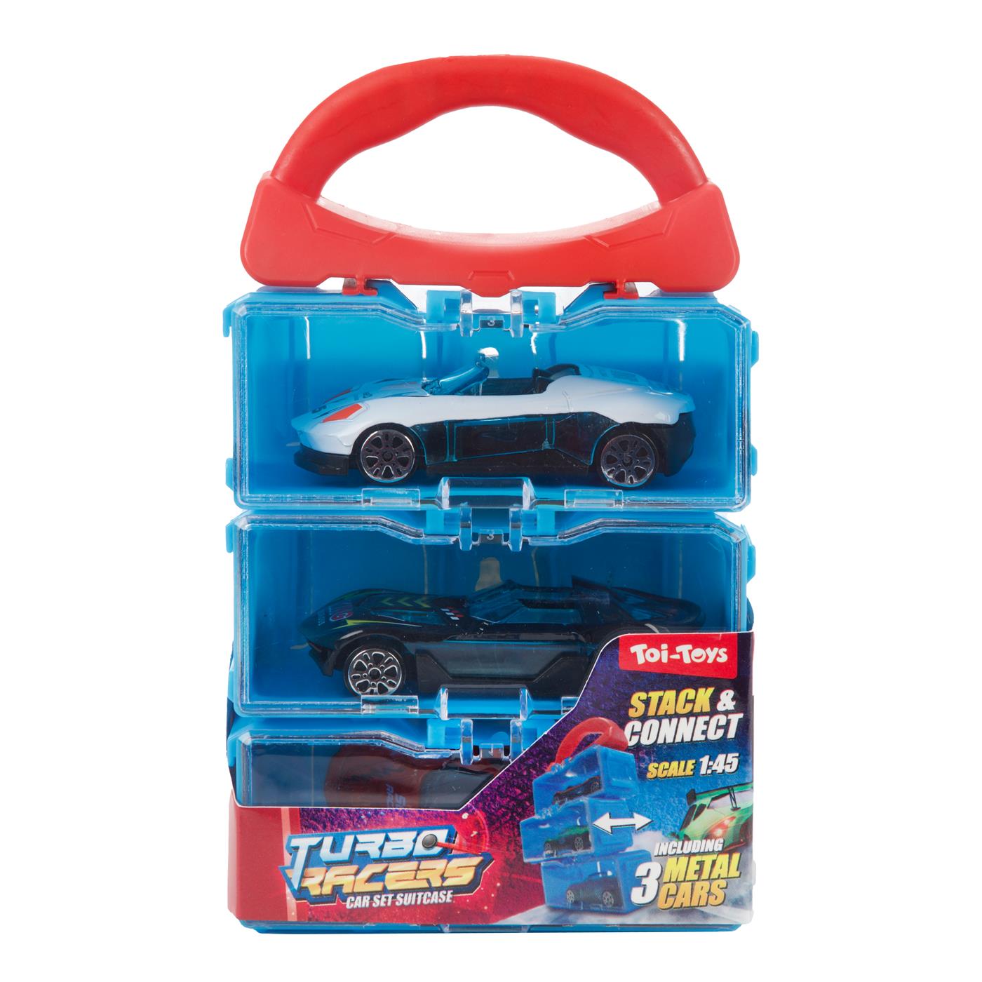 Toi-Toys Turbo Racers Opbergkoffer met 3st metalen auto 2ass