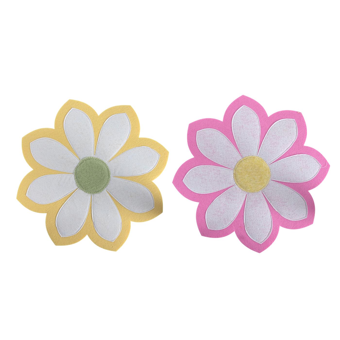Placemat vilt bloem Ø32cm 2 assorti roze/geel