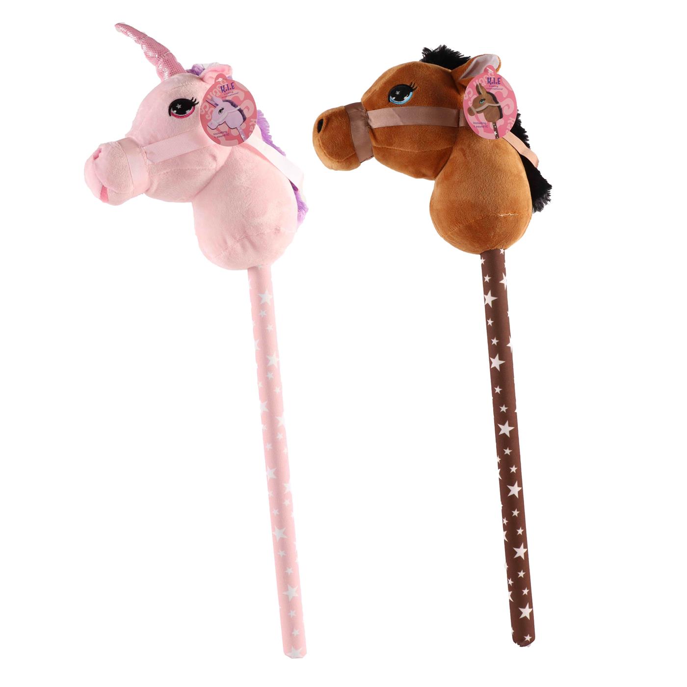 Pluchen stokpaardje met geluid 68cm 2 assorti
