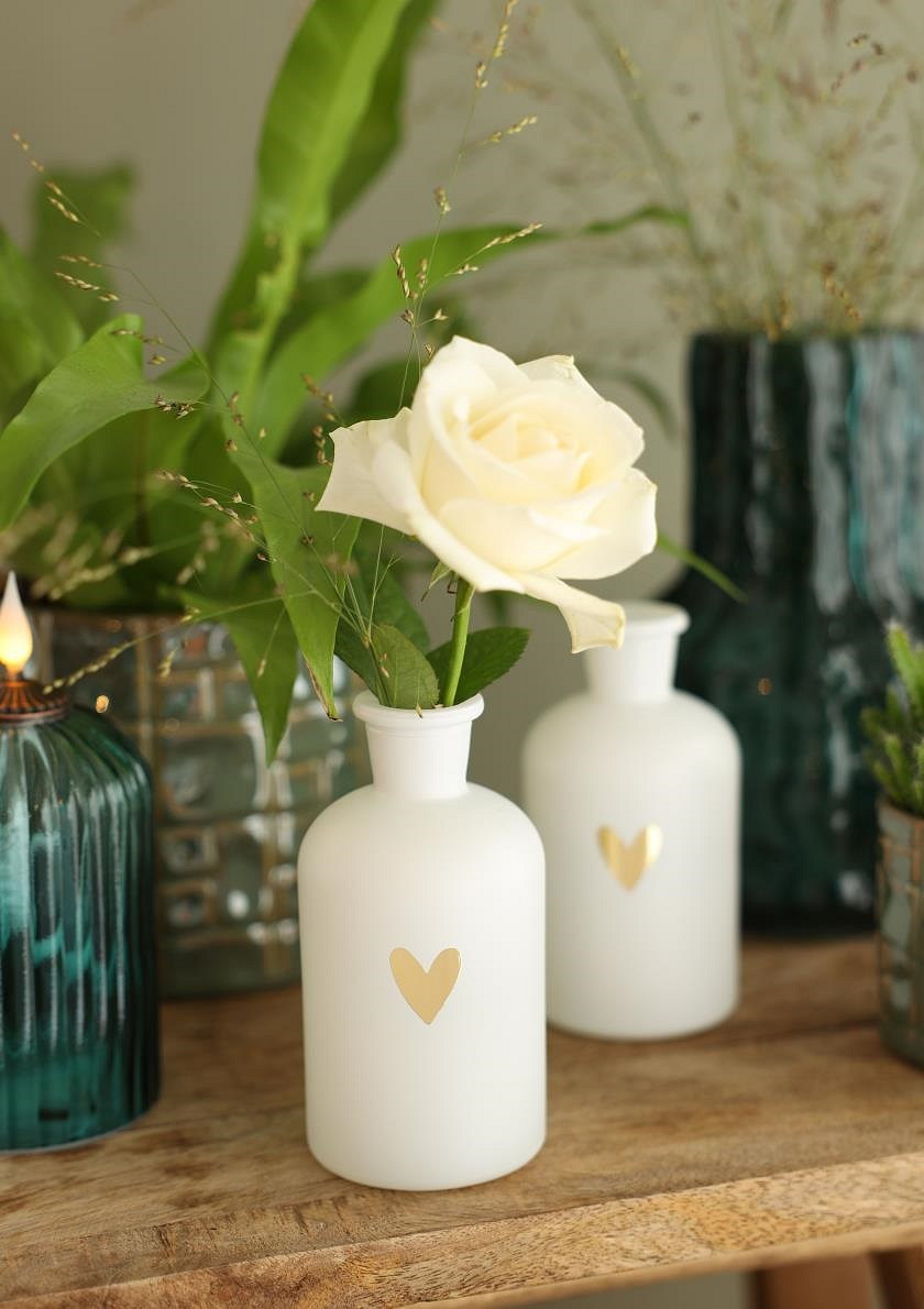 Riga vaas glas wit met gouden hart Ø7xH12cm