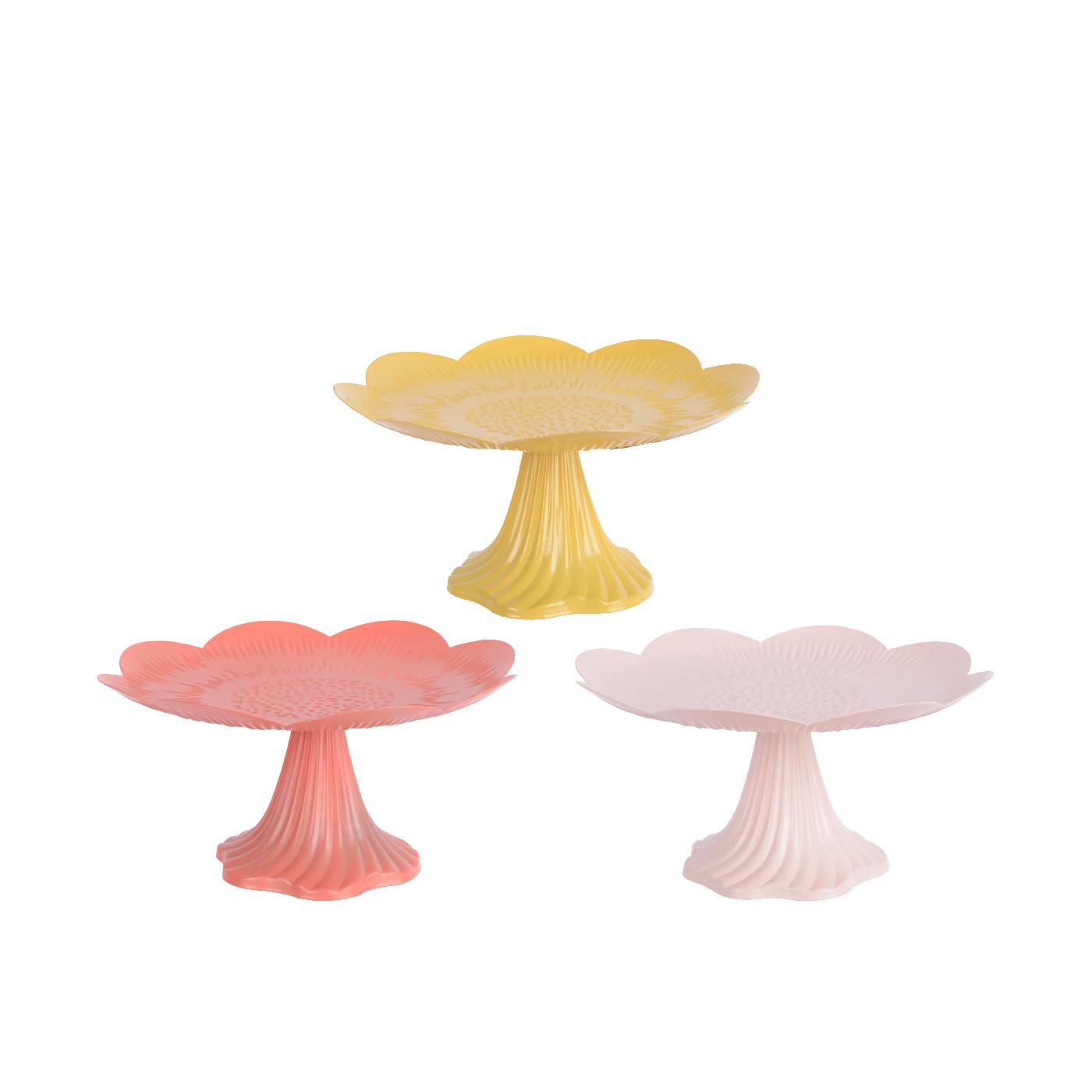 Schaal op voet Bloem ijzer Ø20xH10cm 3 assorti