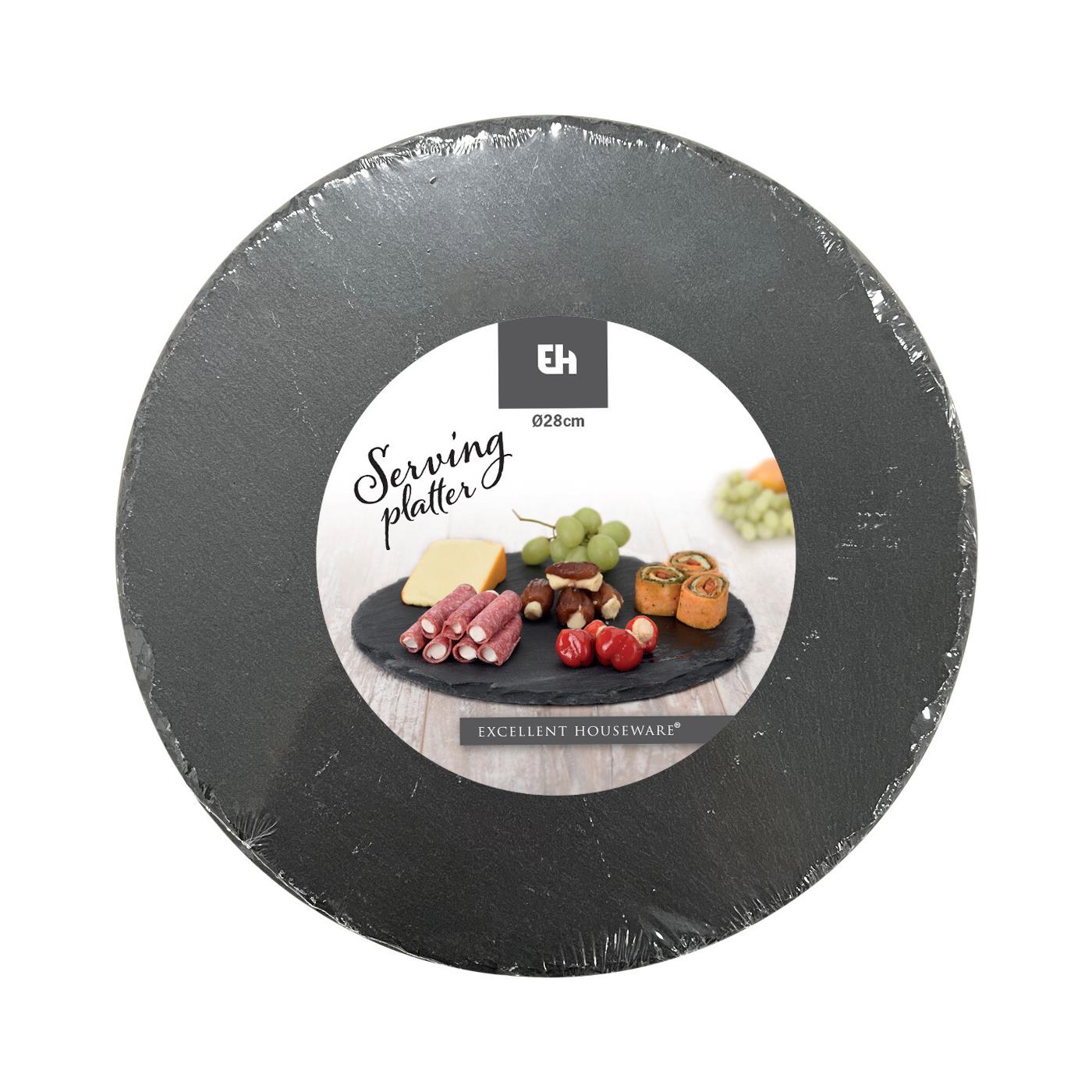 | merk Excellent Houseware | kleur zwart | breedte 28 cm | diameter 28 cm | materiaal leisteen | Vaatwasserbestendig Nee | magnetronbestendig Nee |