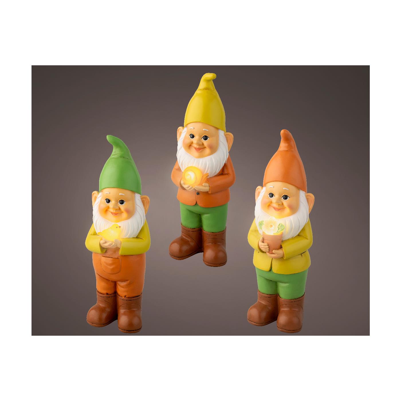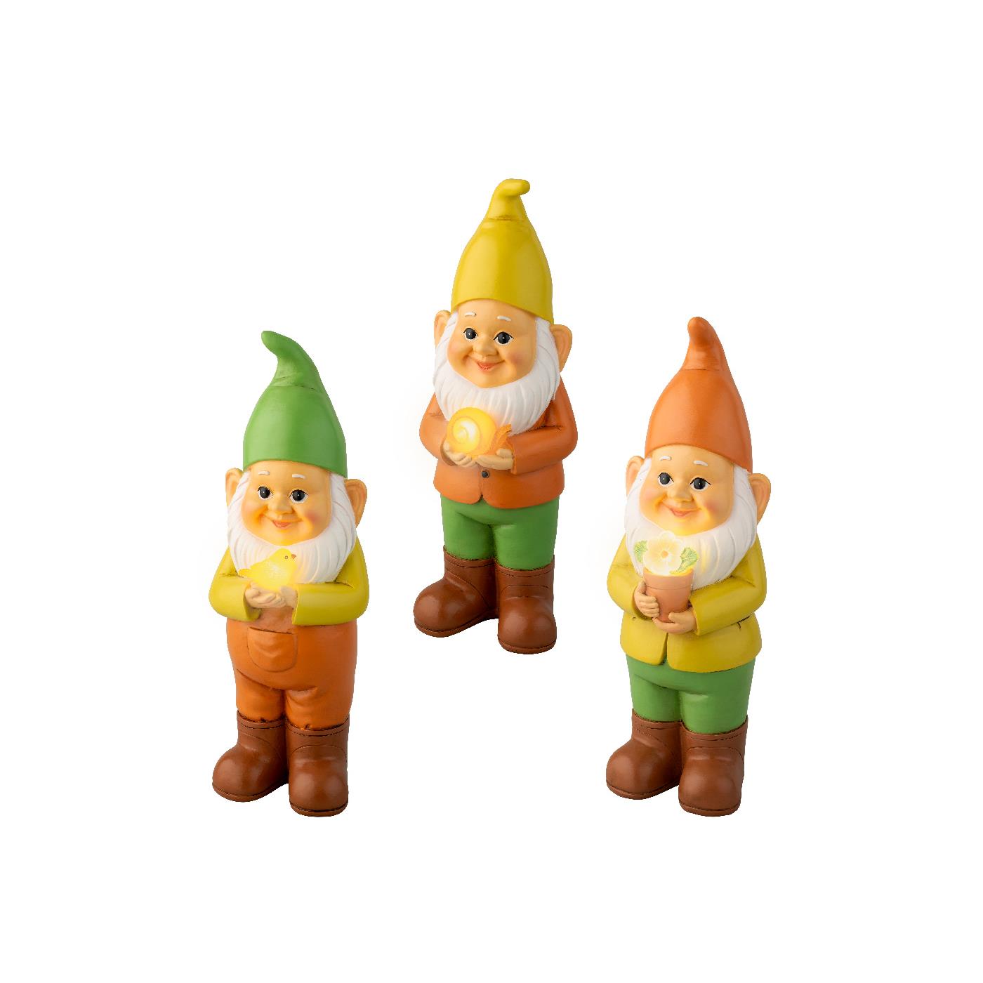 Solar Gnoom polyresin 9,5x10x28,5cm 3 assorti