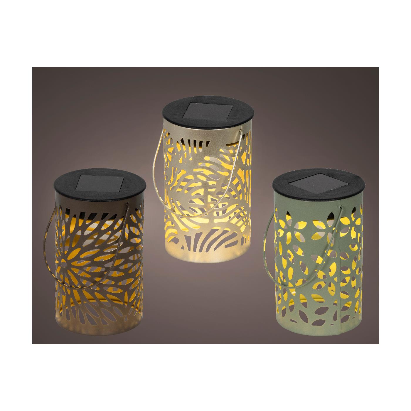 Solar Lantaarn metaal Ø8xH13cm 3 assorti
