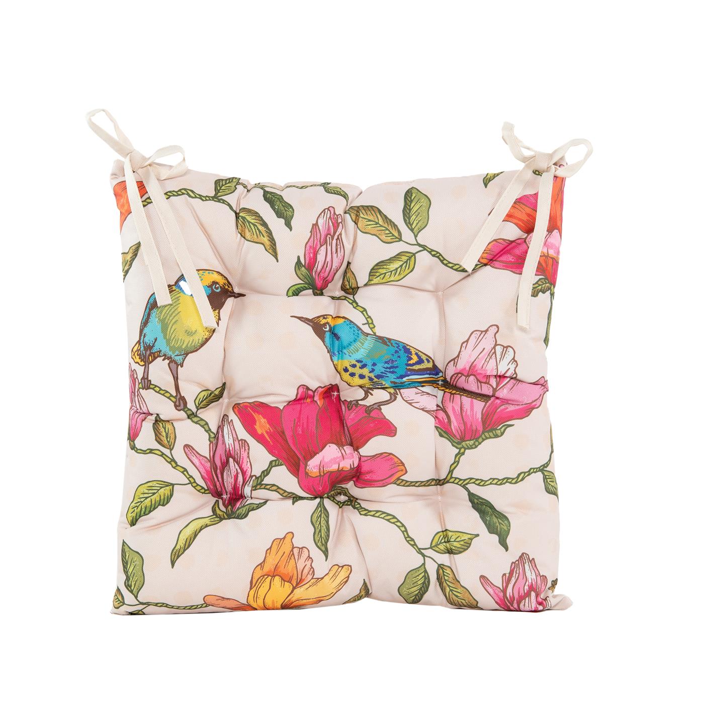 Stoelkussen buiten vogels gewatteerd 38x38cm