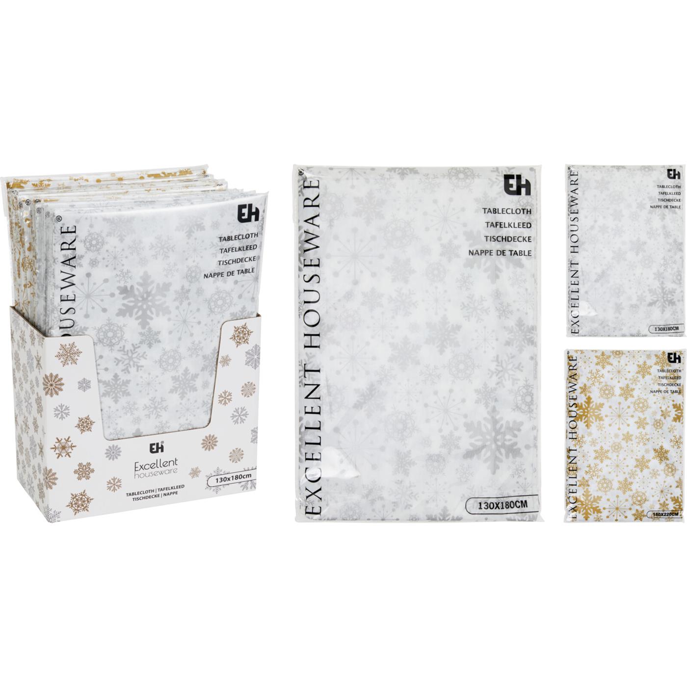 Tafelkleed flanel sneeuwvlokken wit/goud130x180cm