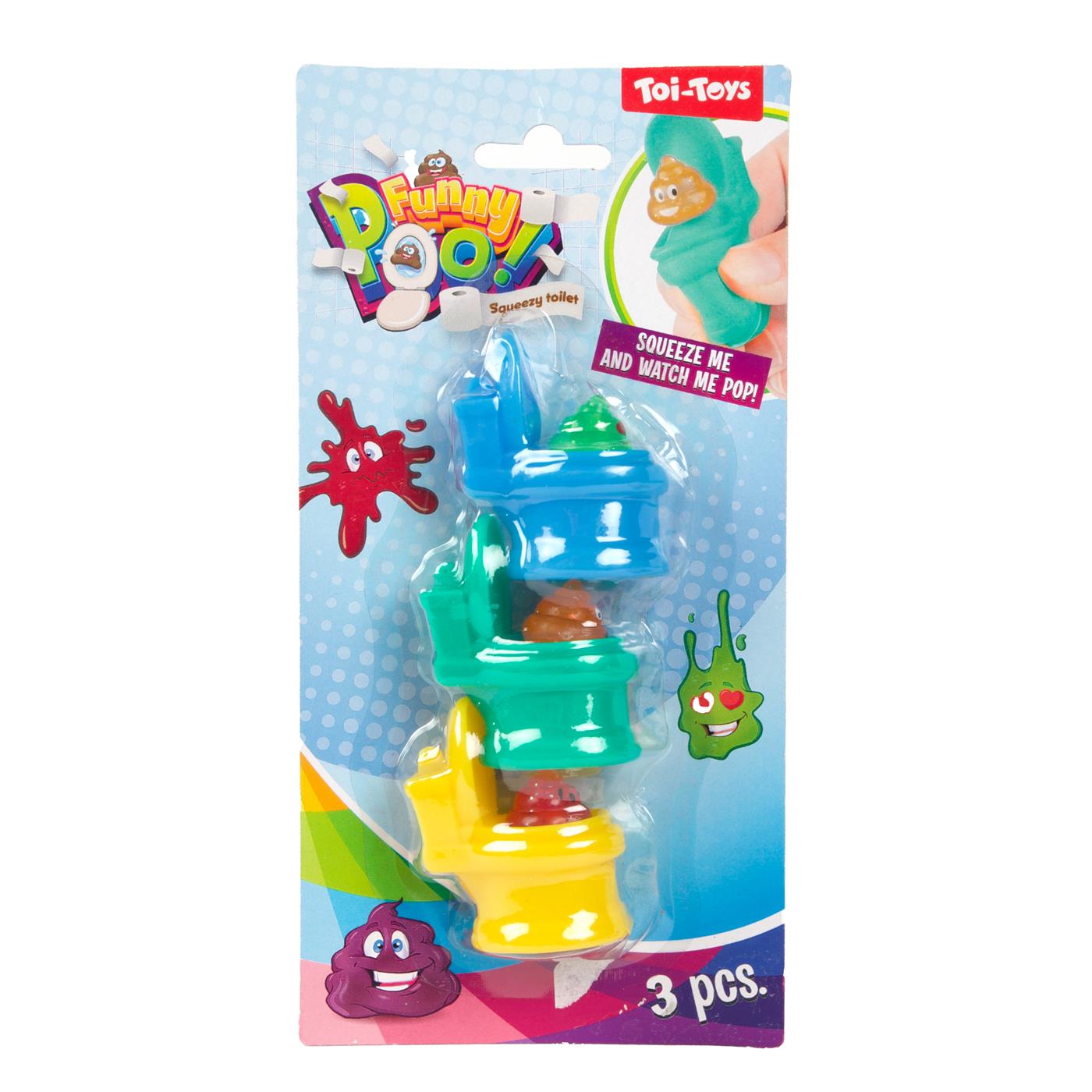 Toi-Toys FUNNY POO Knijptoiletten Glitter Drol set van 3 stuks 2 assorti