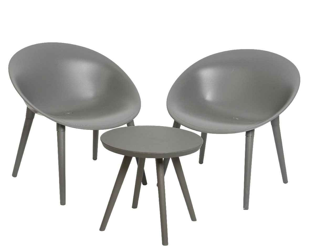 Tuinset Marbella kunststof antraciet. 2 stoelen en 1 tafel.
